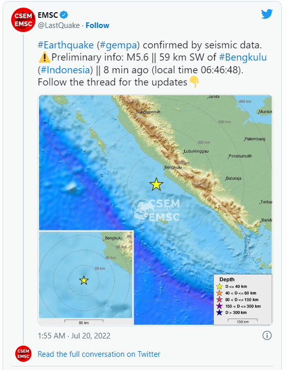 Një tërmet me magnitudë 5.4 ballë ka ndodhur mëngjesin e të mërkurës në pjesën jugore të ishullit Sumatra në Indonezi.