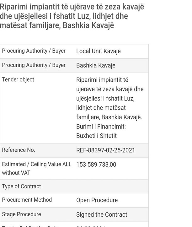 Projekti i riparimit, të cilit i referohet Bashkia e Kavajës, është tenderuar një vit më parë dhe kap vlerën e 153 milionë lekëve të reja.