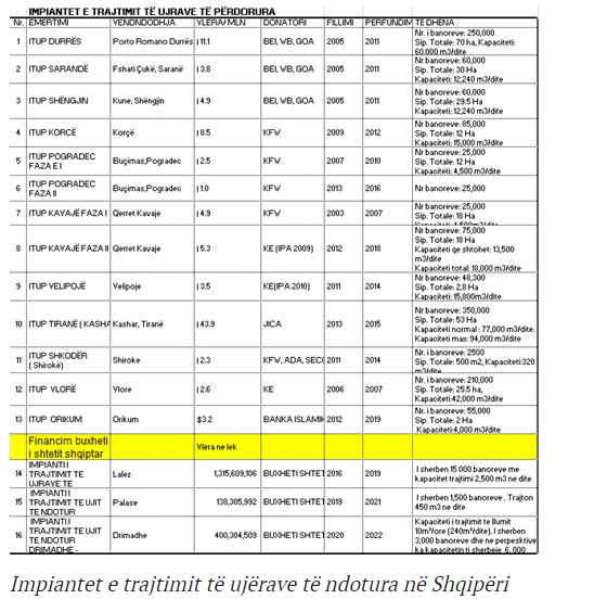 Të dhënat e hulumtuara nga INA MEDIA tregojnë se në vendin tonë janë investuar rreth 13 miliardë lekë të reja ose 105 milionë euro për të ngritur sistemin e filtrimit të ujërave të ndotura.