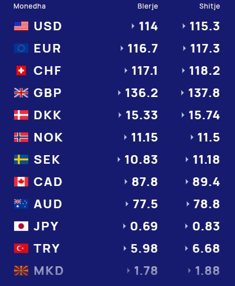 Monedha europiane sakaq është vijon të mbetet në nivele të njëjta që nga fundjava duke u blerë me 116.7 lekë dhe shitur me 117.3. lekë.