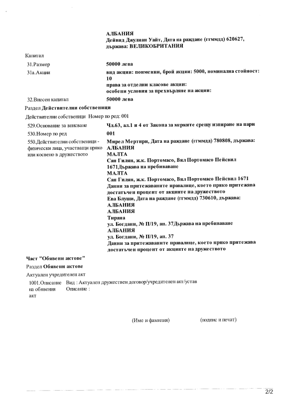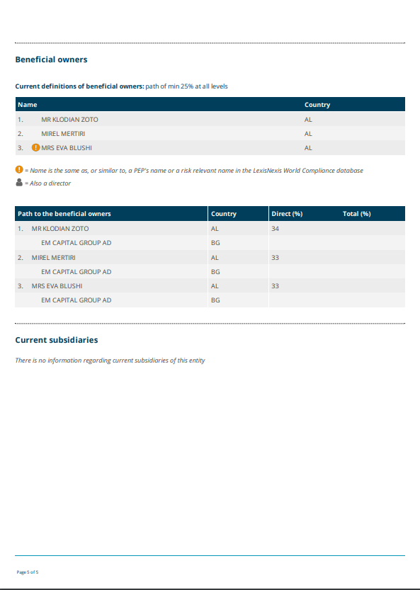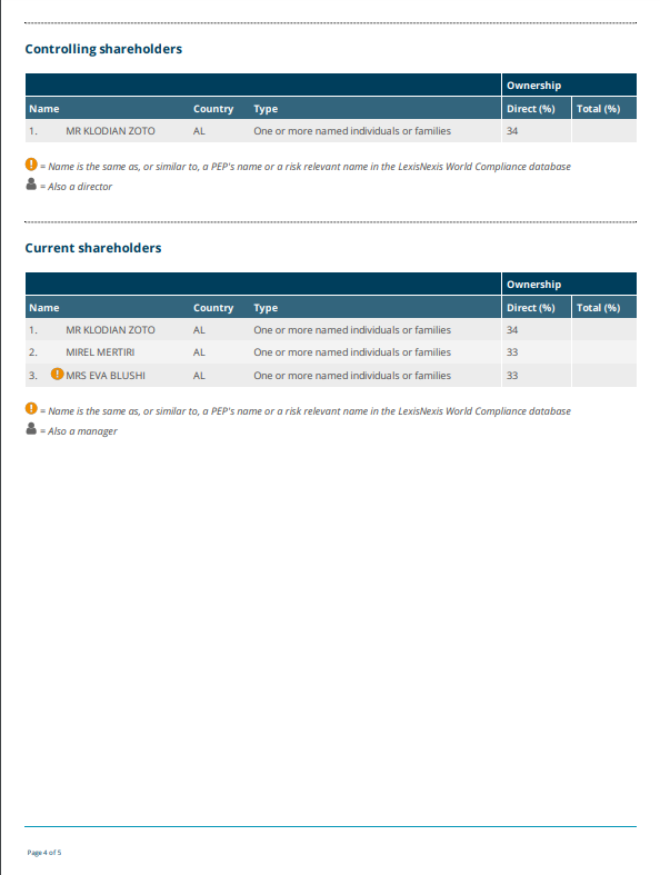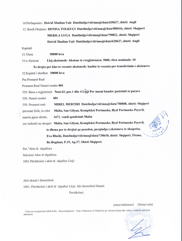 Dokumenti tregon se kompania është e ndarë në tri pjesë të babarbarta në zotërim të Blushit, Mirel Mertirit dhe Klodian Zotos, shtoi ai, ndërsa më tej listoi edhe disa pyetje për SPAK.