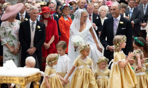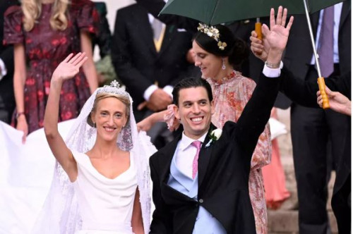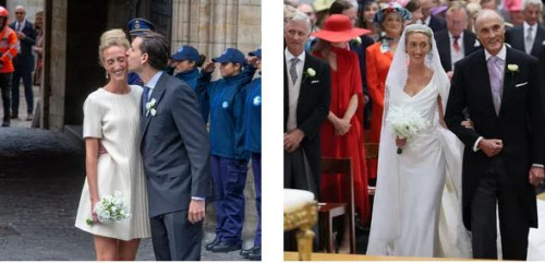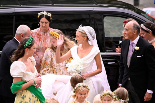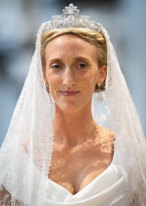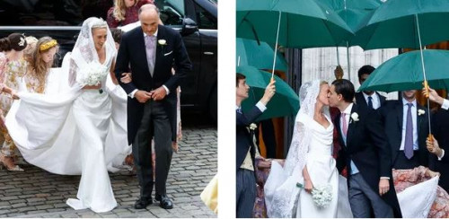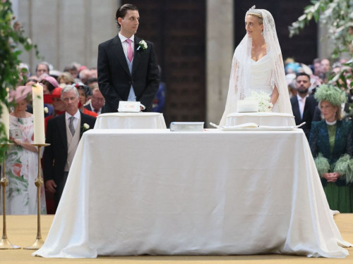 Maria kishte në kokë kurorën e diamantit Savoy-Aosta dhe fustani i saj ishte dizajnuar nga Vivienne Westwood.