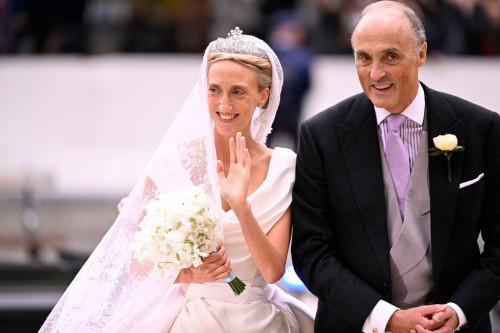 Sa i përket ceremonisë në kishë, Princesha Maria Laura mbërriti me babain e saj Princi Lorenz.