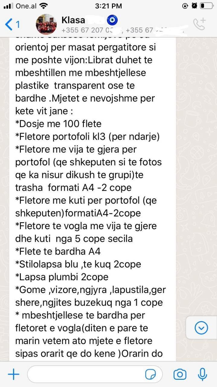 Mjafton të shohësh grupet përmes të cilave mësuesit komunikojnë me prindërit për të kuptuar se e gjithë barra financiare shkarkohet mbi ta, ndërkohë që kryeministri flet për shkolla me standarde dhe arsim falas.