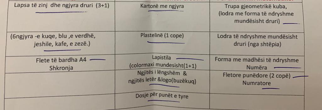 Në grupet e prindërve ka filluar të shpërndahet lista e mjeteve dhe objekteve që duhet të blejnë për klasën.