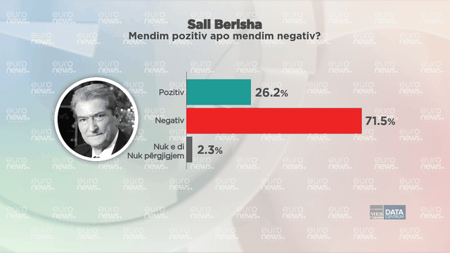 Qasja negative rritet më shumë kur flasim për opozitën, ku për kryetarin e Partisë Demokratike, Sali Berishën, 71.5% e shqiptarëve kanë mendim negativ. Ndërsa vetëm 26.2% e të targetuarve kanë mendim pozitiv.