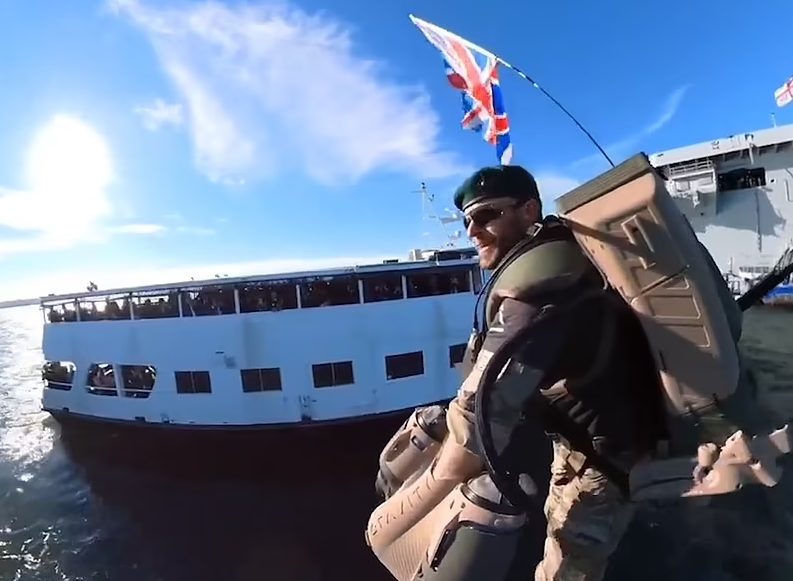 Armatura që bëri ushtarët të fluturojnë mbi Oqeanin Atlantik është e ndërtuar nga helmeta dhe kostumet taktike që tundin flamurin e Union Jack.