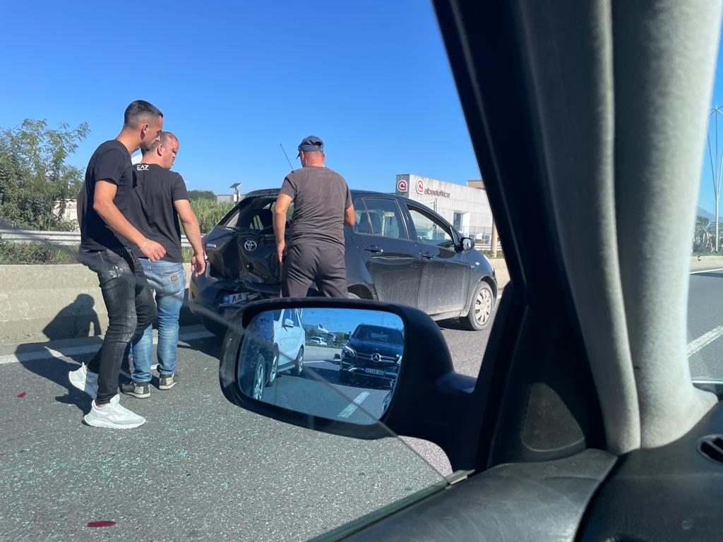 Mësohet se një mjet tip “Toyota”, është goditur nga një automjet tip “Mercedes Benz ML” që lëvizte pas saj. Fatmirësisht nuk raportohet për njerëz të lënduar, por dëmet materiale janë të dukshme.