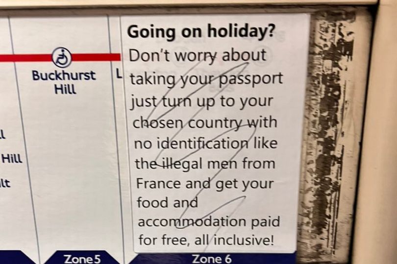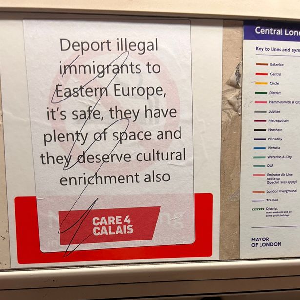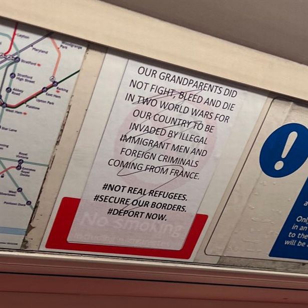 MyLondonNews raporton se njerëzit që udhëtonin në linjën Qendrore këtë javë panë parullat me mbishkrime kundër emigrantëve të ngjitura në çdo tren.