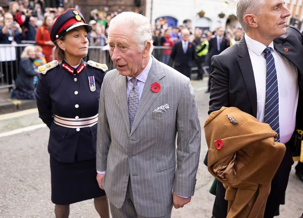 Teksa oficerët po e mbanin të arrestuarin në një furgon policie në pritje, Charles vazhdoi me një ceremoni tradicionale që pa mbretin të mirëpritej zyrtarisht në qytetin e York-ut nga kryetari i bashkisë.