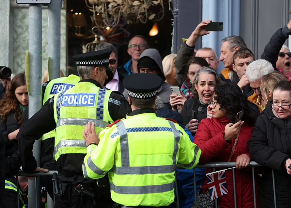 Ndërkohë, shikuesit që ishin mbledhur për të parë anëtarët e familjes mbretërore bërtisnin “Zot ruaj mbretin” dhe “turp për ty“.