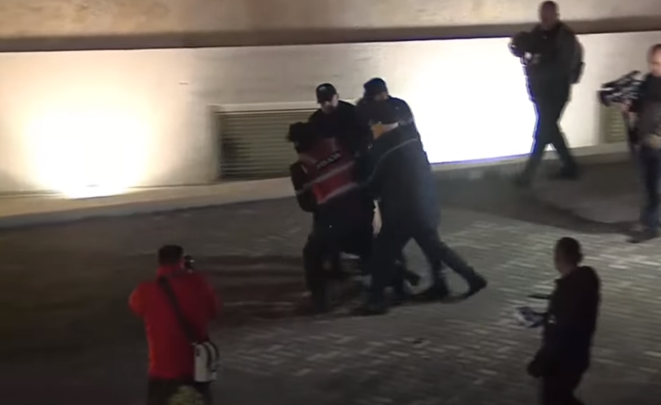 Një protestues është shoqëruar nga policia.
