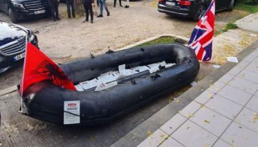 Një gomone me flamurin e Shqipërisë dhe Britanisë ishte e pranishme mes qytetarëve për të sjellë në vëmendje dramën e shpopullimit të vendit, gjatë qeverisjes Rama.