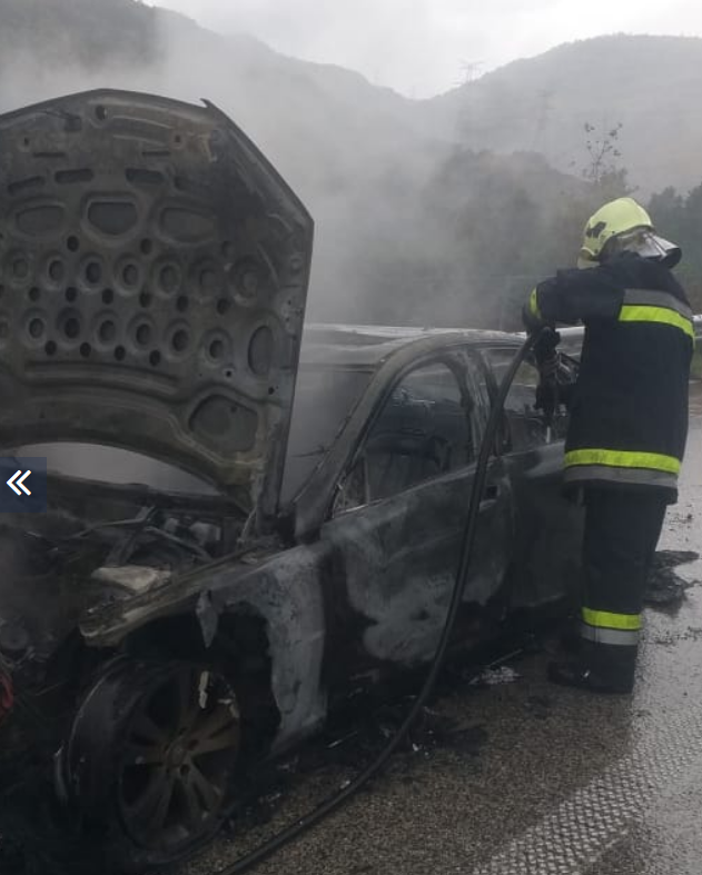 Një automjet është përfshirë nga flakët në dalje të tunelit të autostradës Elbasan-Tiranë.
