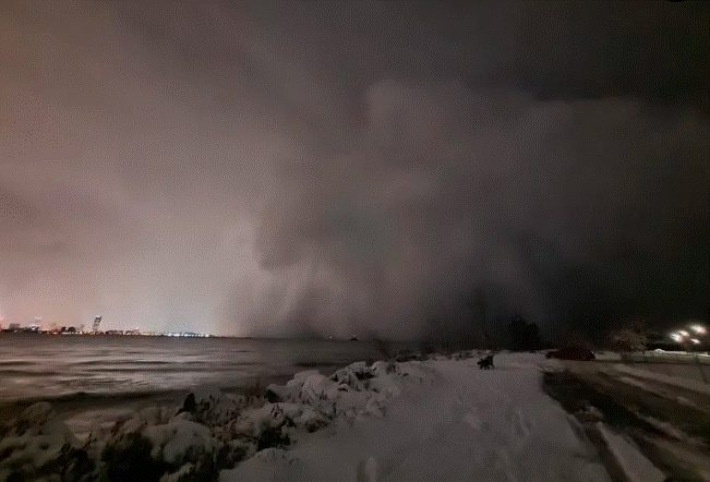 Amazing #LakeEffectSnow #drone footage of the snow bands coming off #LakeErie See the full vide at https://t.co/FLSjr5zJvC pic.twitter.com/POnQnJHw5m