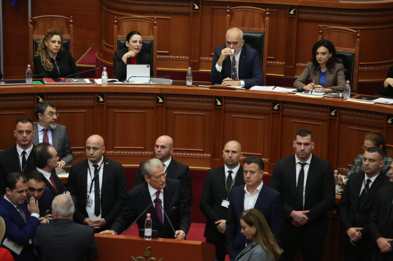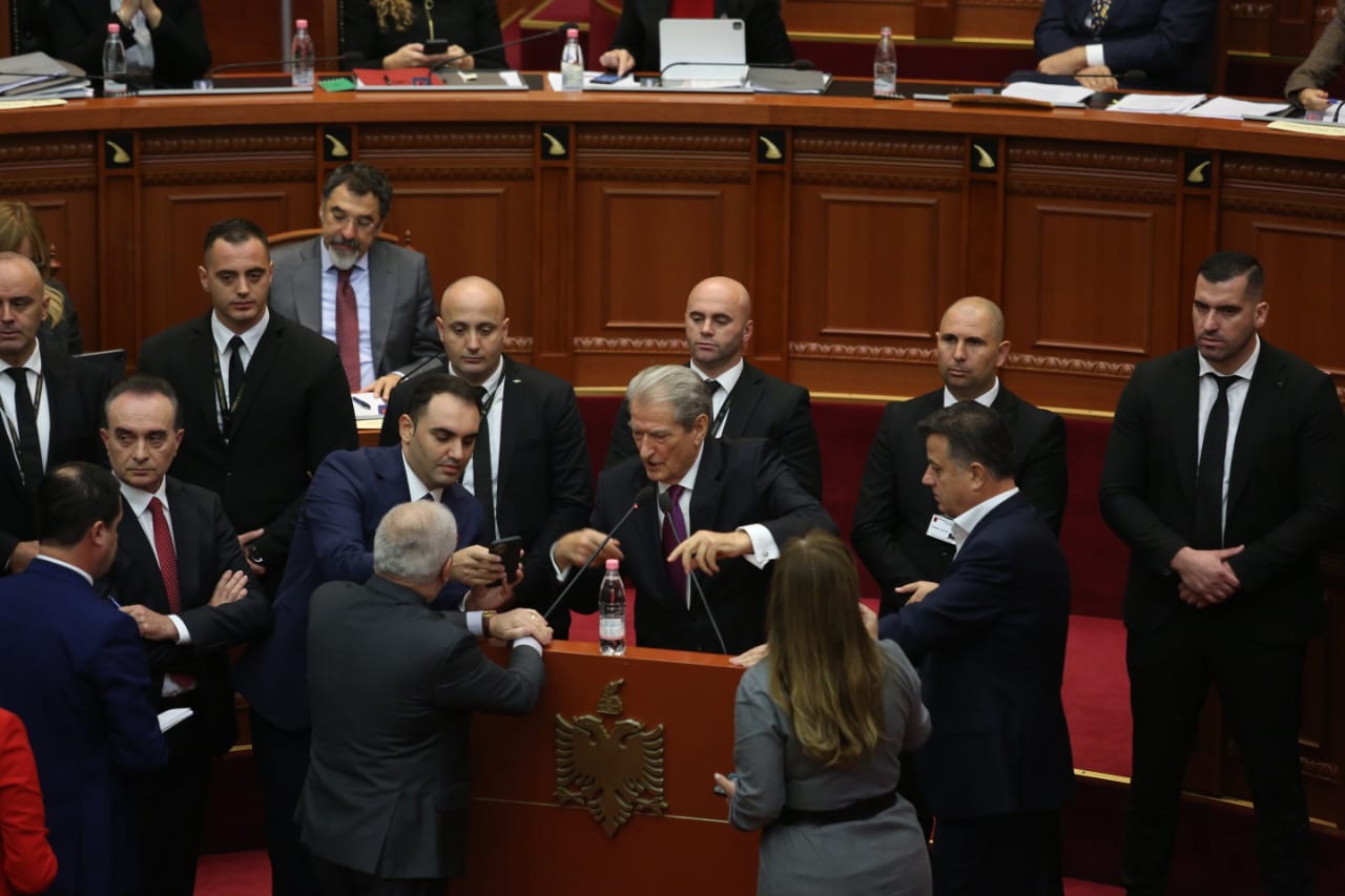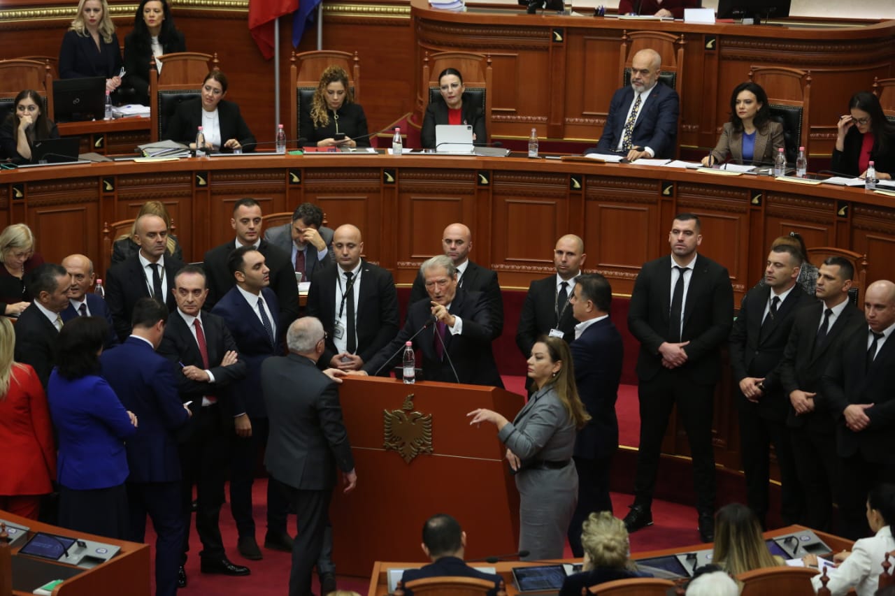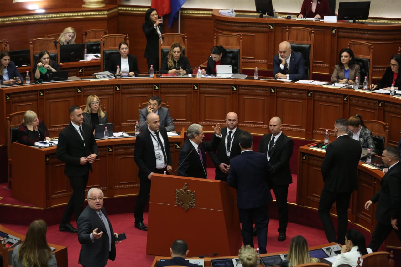 Opozita ka kërkuar po kështu t’i jepet fjala dhe pasi kreut të PD-së nuk i është lejuar t’i përgjigjet kreut të grupit të PS-së Taulant Balla, deputetët e opozitës kanë rrethuar foltoren.