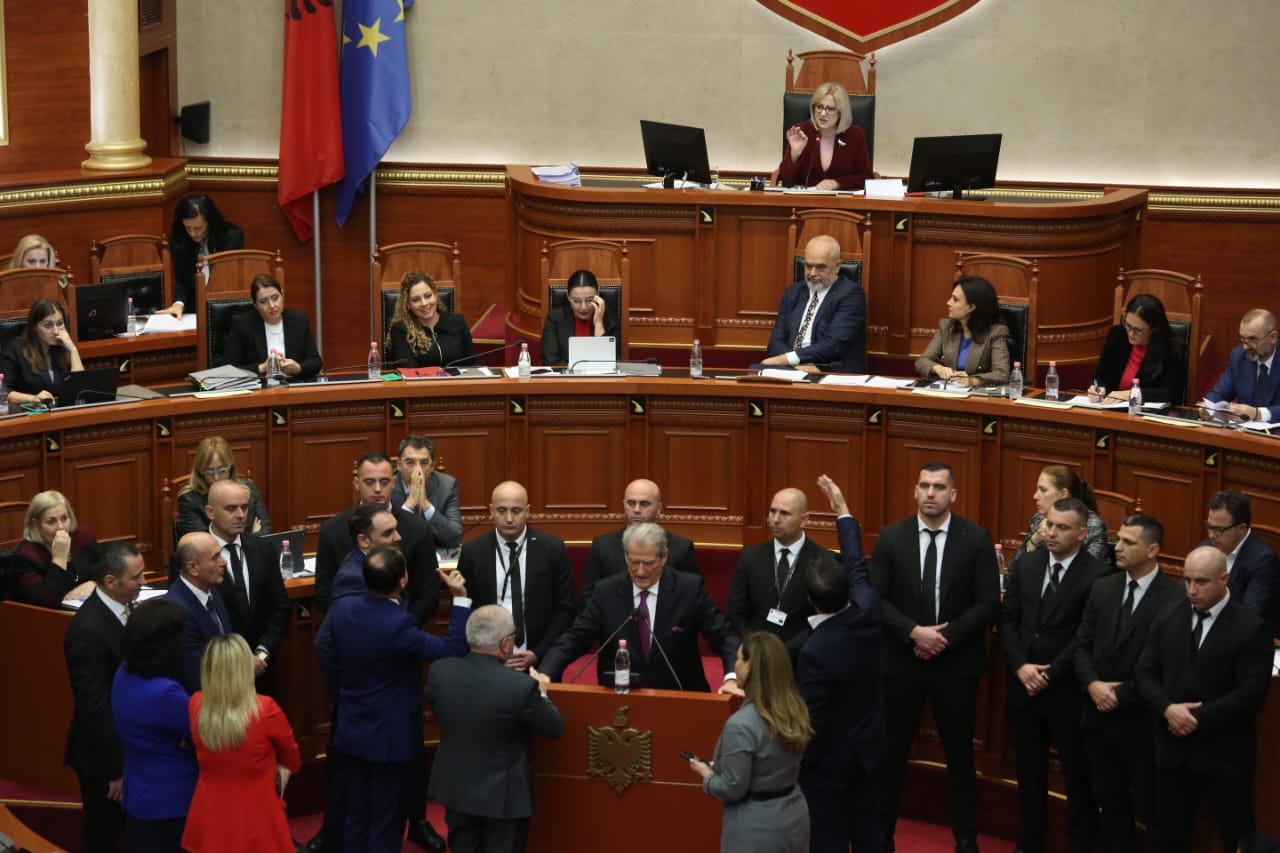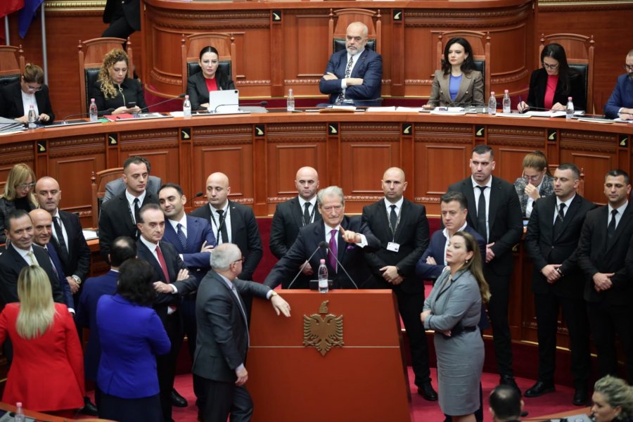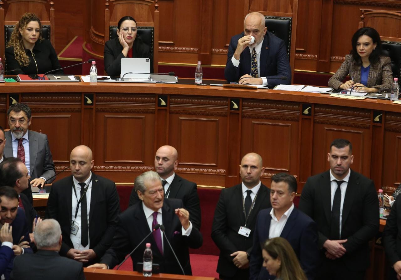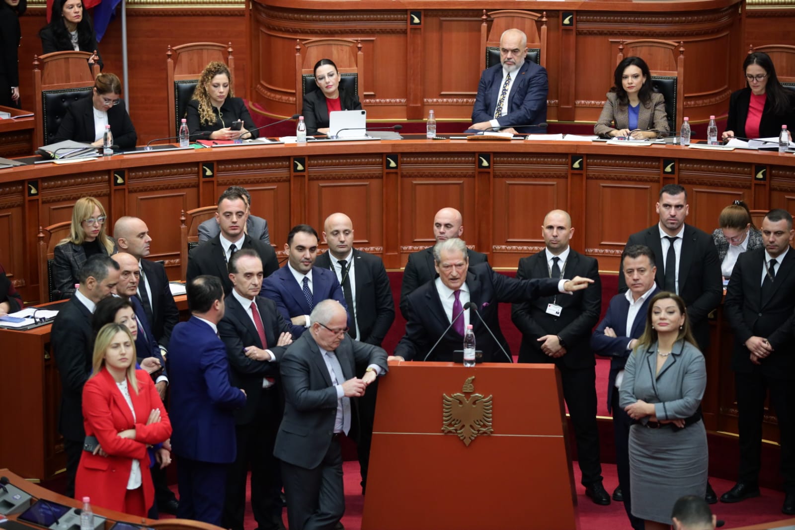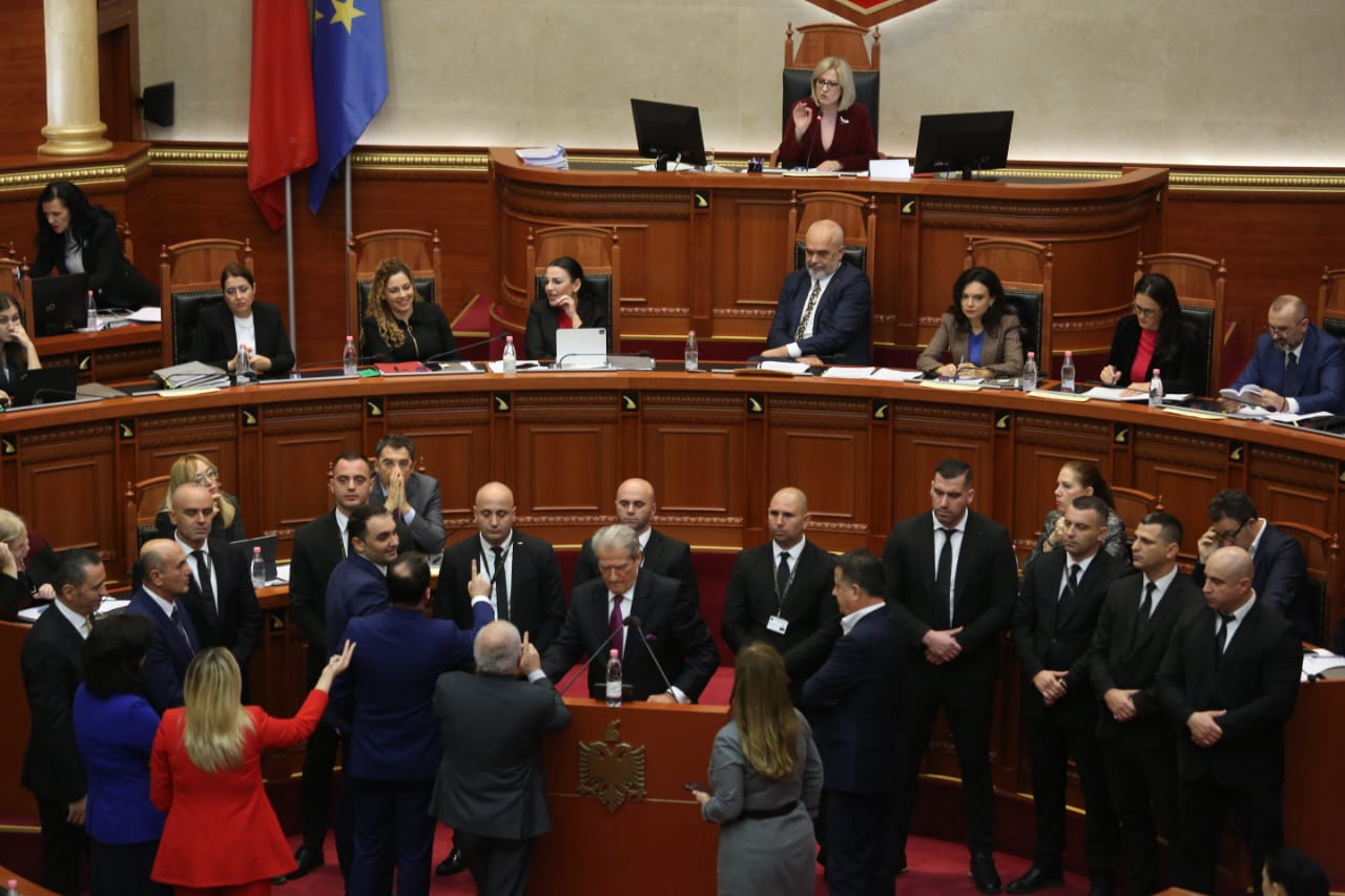 Opozita ka kërkuar po kështu t’i jepet fjala dhe pasi kreut të PD-së nuk i është lejuar t’i përgjigjet kreut të grupit të PS-së Taulant Balla, deputetët e opozitës kanë rrethuar foltoren.