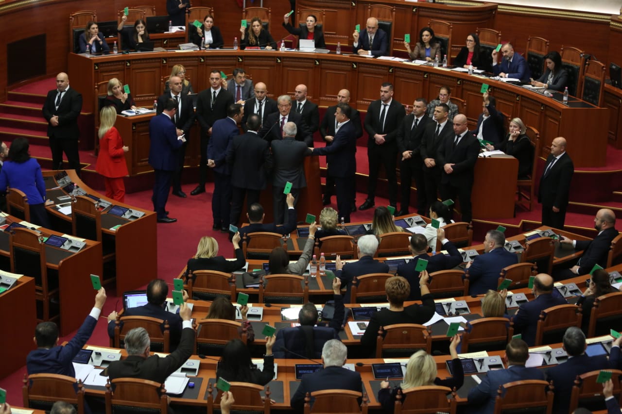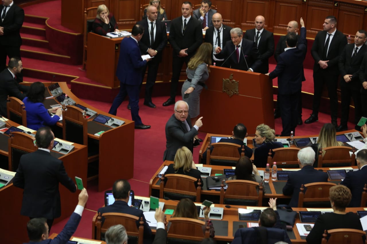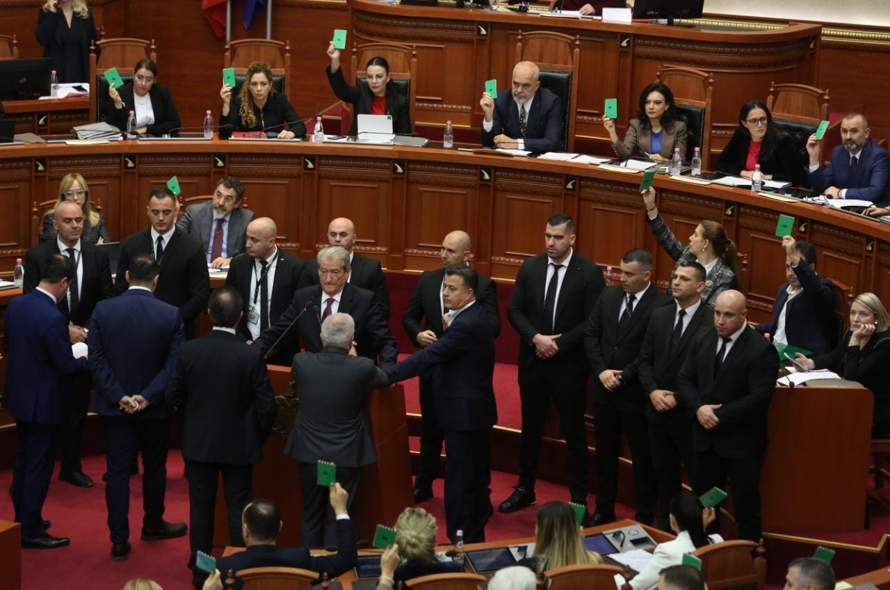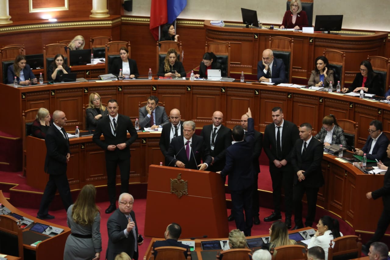 Opozita ka kërkuar po kështu t’i jepet fjala dhe pasi kreut të PD-së nuk i është lejuar t’i përgjigjet kreut të grupit të PS-së Taulant Balla, deputetët e opozitës kanë rrethuar foltoren.