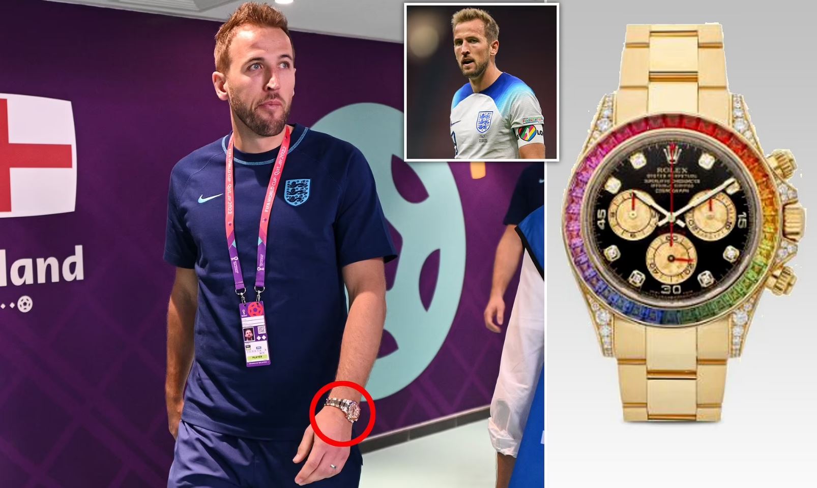 Kane është fotografuar në Katar duke mbajtur në dorë një orë “Rolex” shumëngjyrëshe.