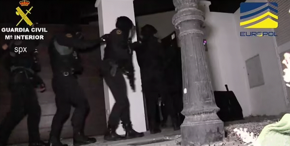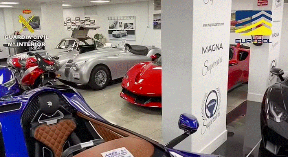 Garda Civile thotë se disa nga automjetet kishin vlerë rreth 300,000 euro secila. Pamjet e publikuara nga Garda Civile sot treguan oficerë të armatosur rëndë që hynë me forcë në pallate ku bënë disa nga arrestimet dhe morën të dyshuarit në pranga.