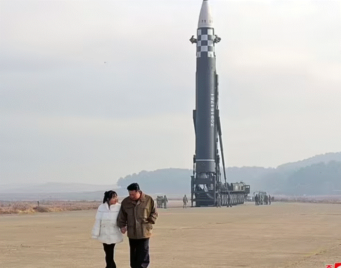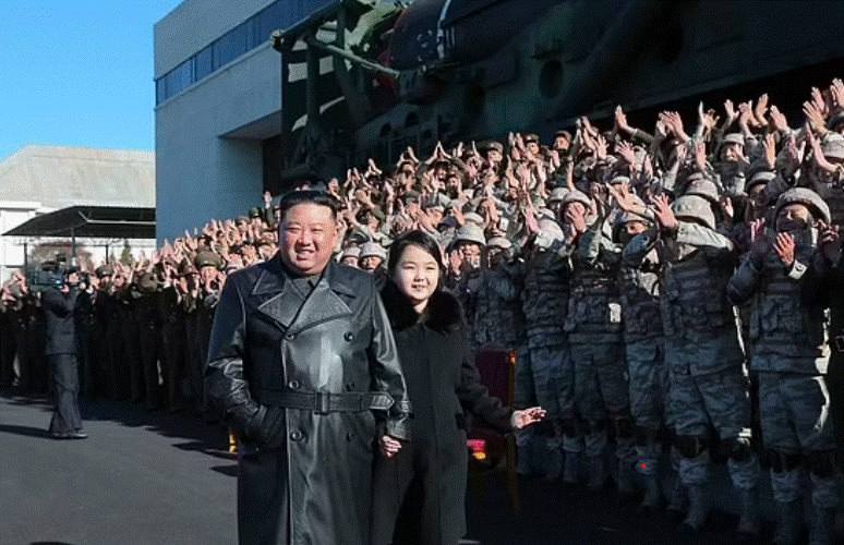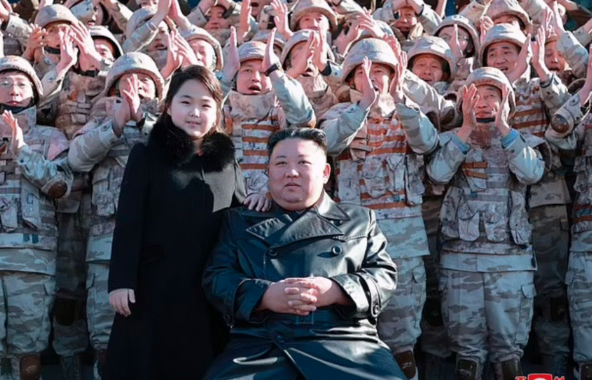 Ju-ae, e cila mendohet të jetë 10 vjeçe, u fotografua duke buzëqeshur me babain e saj teksa shpërblente shkencëtarët dhe zyrtarët ushtarakë përgjegjës për ndërtimin e një rakete bërthamore të re.
