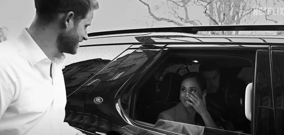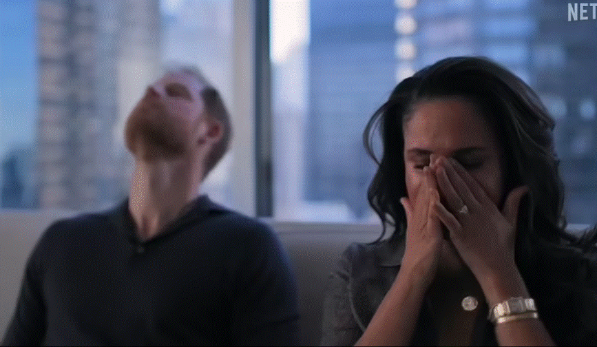 Ndërkohë zëri i Harry-t dëgjohet duke thënë: “Askush nuk e sheh atë që ndodh pas dyerve të mbyllura“, përpara se shikuesve t’u shfaqet një imazh intensivisht personal i Meghan në telefon me kokën në duar – me sa duket duke qarë.