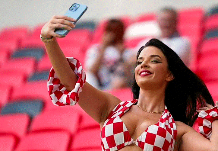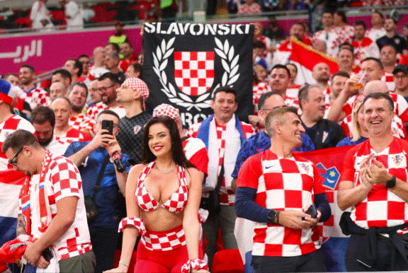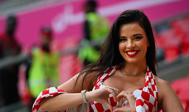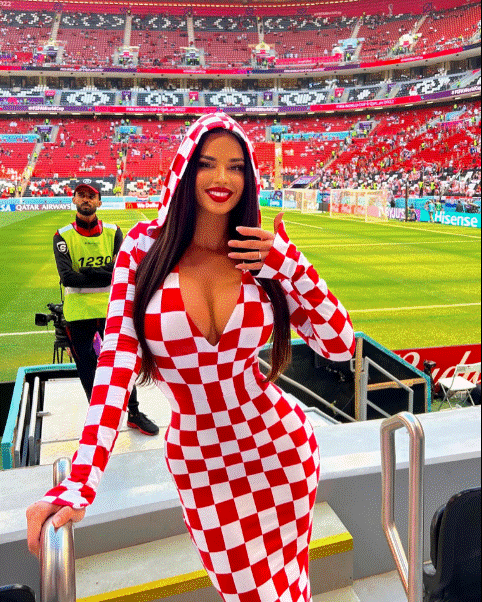“Tifozja më e nxehtë në botë“, Ivana Knoll është shfaqur sërish me veshje provokuese në stadiumin “Ahmad Bin Ali” në vigjilje të sfidës mes Kroacisë dhe Belgjikës për të brohoritur për kombëtaren e saj të dashur, pavarësisht kritikave për stilin e saj.