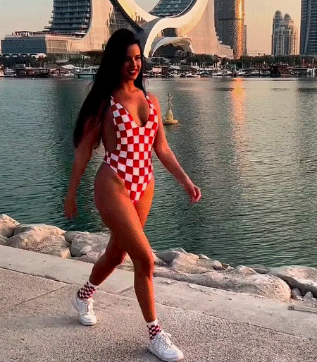 Ivana Knoll, e cila në një intervistë provokoi duke thënë se vendasit në Katar i duan zgjedhjet e saj të guximshme (pavarësisht ligjeve të modestisë) ndau foto të saj nga stadium në rrjetet sociale.