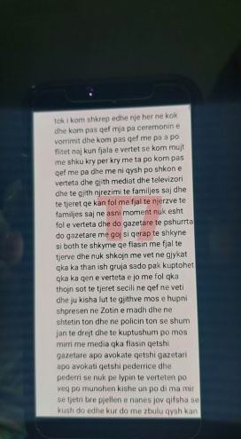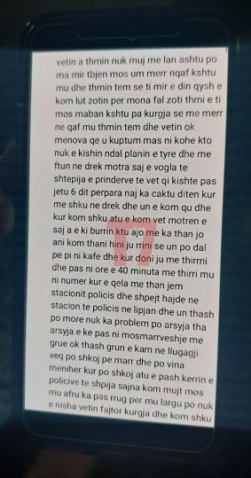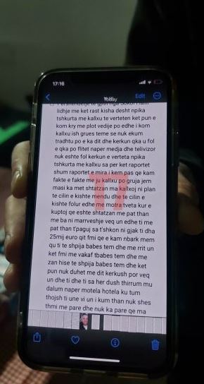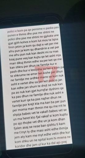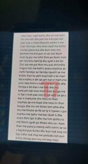 Mediat në Kosovë kanë siguruar letrën që Sokol Halili i dorëzoi familjarëve të tij, pasi vrau me armë zjarri ish-bashkëshorten, Hamide Magashi, në oborrin e maternitetit dy ditë më parë në Prishtinë.