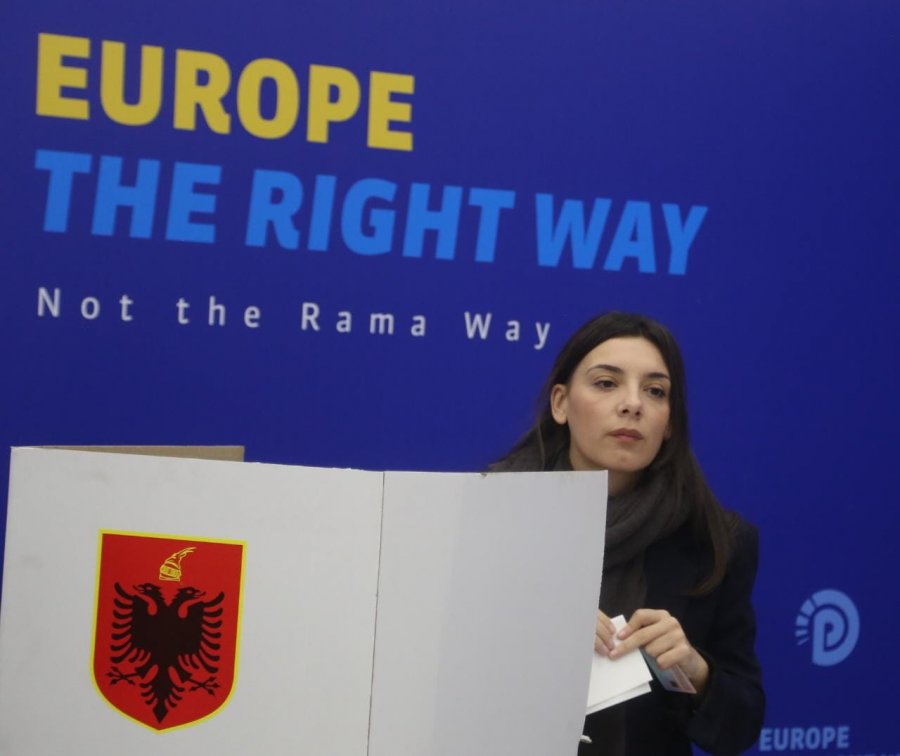 Në selinë e PD për 1 nga 7 kandidatët në garë për bashkinë e Tiranës, votoi edhe kryedemokrati Sali Berisha, i cili shoqërohej nga bashkëshortja, Liri Berisha.