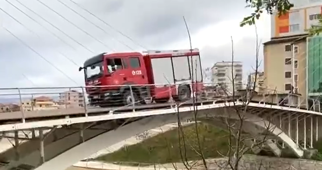 Ndërkohë që hynin në zonën ku ndodhej makina në flakë, një nga automjetet e Zjarrëfikëses ka ngecur në urën mbi lumin Gjanica.