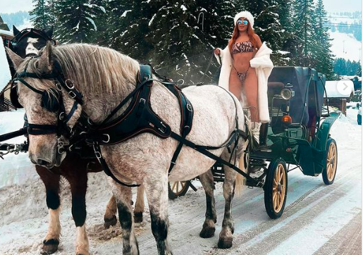 Reperja e njohur ka sfiduar të ftohtin e acartë, teksa ka pozuar me bikini në një shëtitje me kuaj.