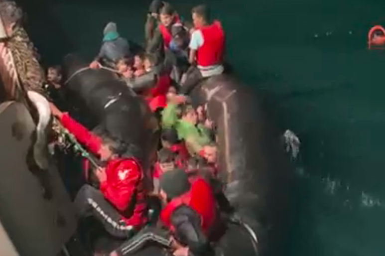 Video footage shows a number of people being rescued from an inflatable boat, following a major incident in the English Channel.