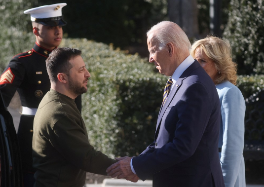 Presidenti i Ukrainës, Volodymyr Zelensky, ka mbërritur në Shtëpinë e Bardhë, Ëashington. Ai është pritur nga presidenti Joe Biden dhe Zonja e Parë, Jill Biden.