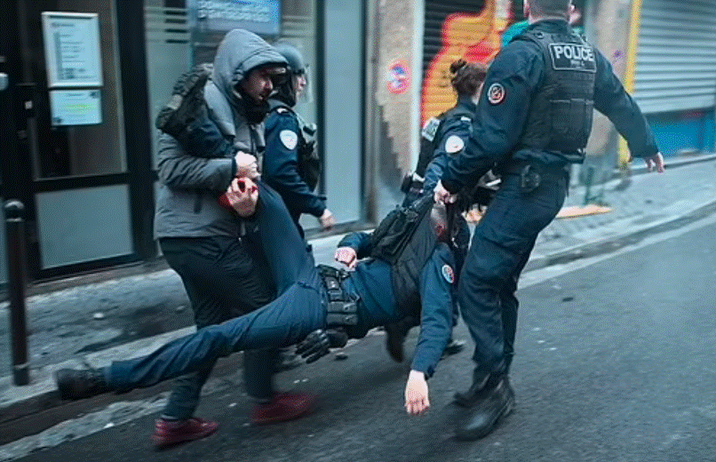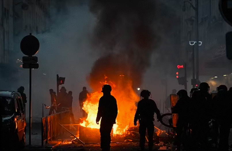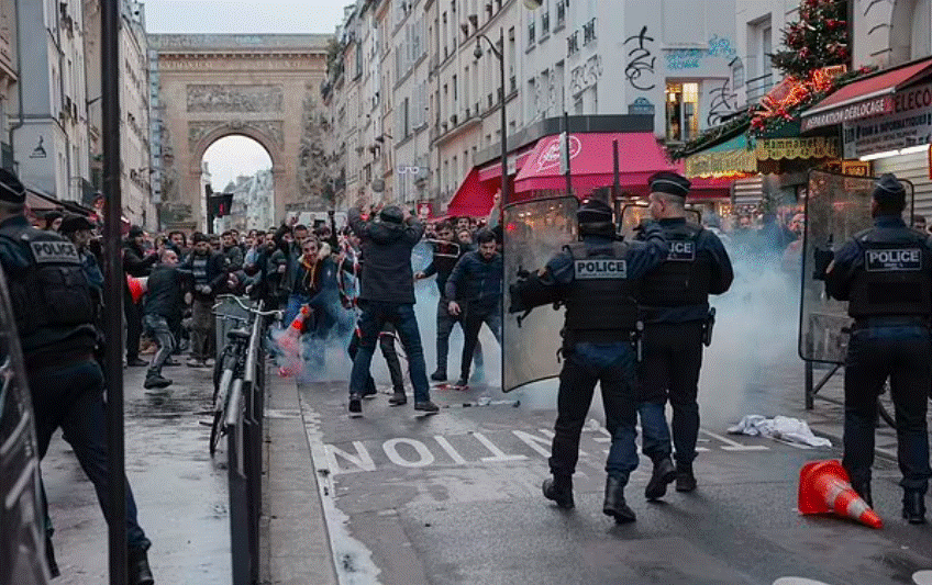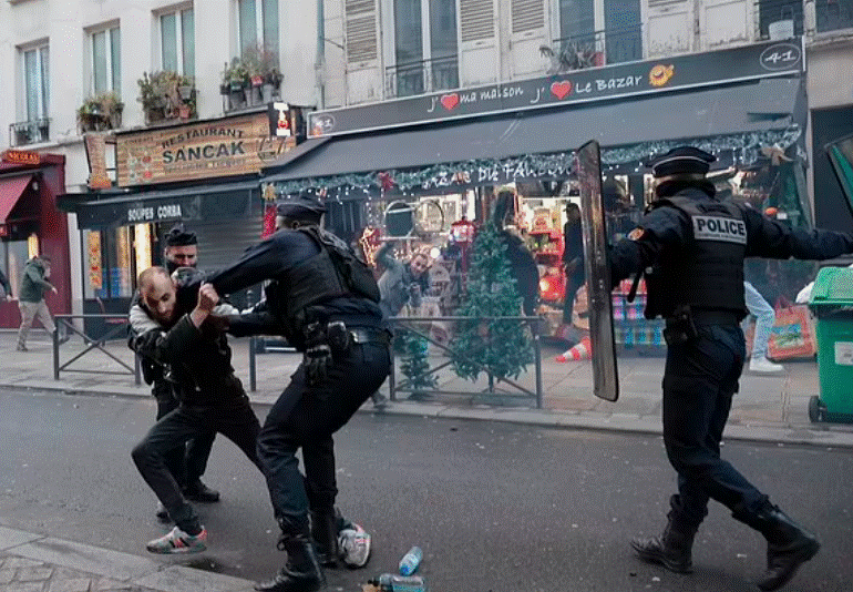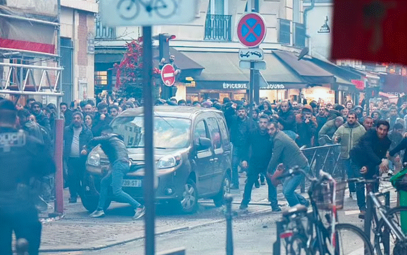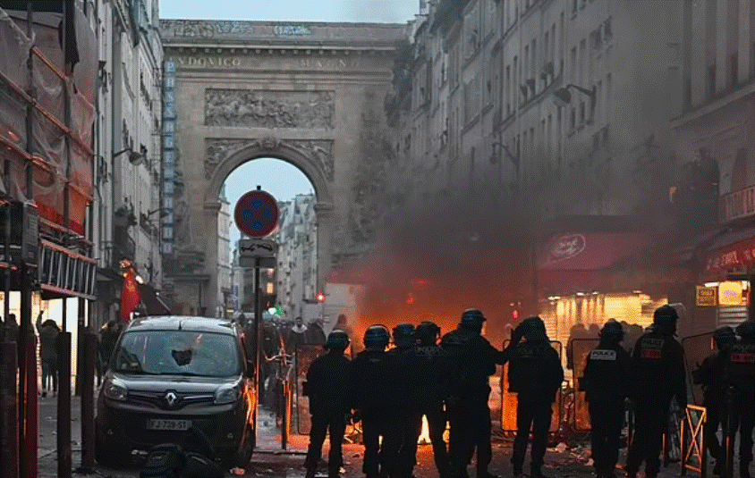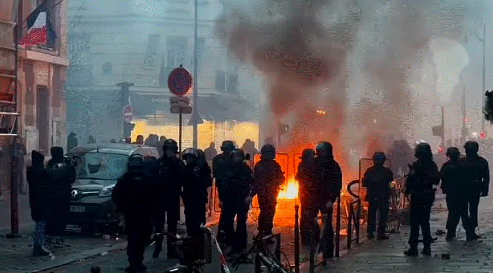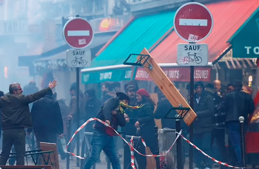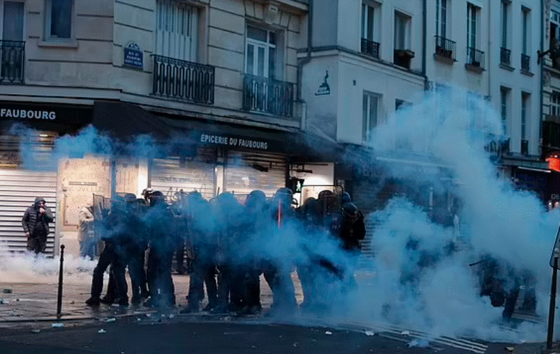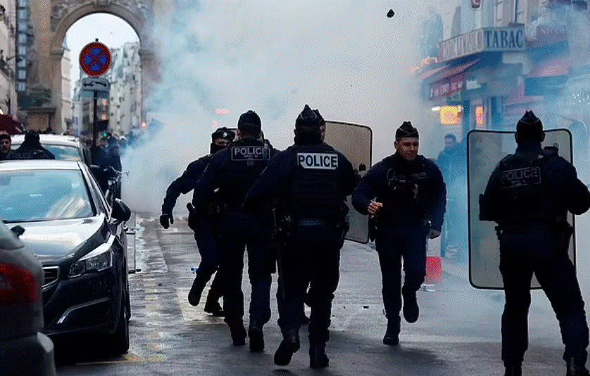 Fishekzjarre fluturuan në rrugën du Faubourg Saint-Denis drejt policisë, e cila përdori gaz lotsjellës për të shpërndarë demonstruesit.