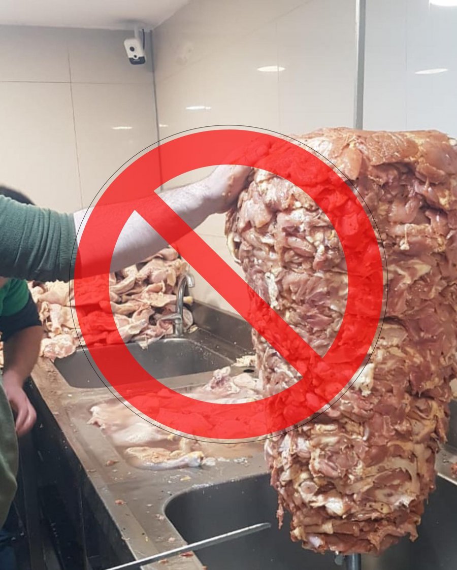 Nga kontrolli i kryer në subjektin “V. Gj.”, me aktivitetit fast food, Tiranë, u konstatua se produkti gjiro përpunohej në kushte të papërshtashme higjieno – sanitare.