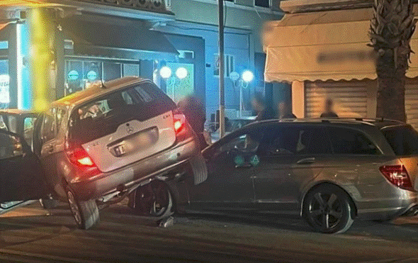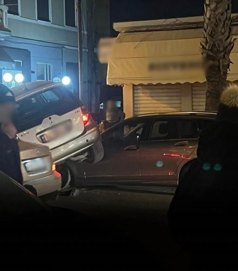 Pamjet tregojnë se një automjet tip “Mercedes Benz” ka përfunduar sipër makinave të parkuara në bulevardin “Epidamn”, në qytetin bregdetar.