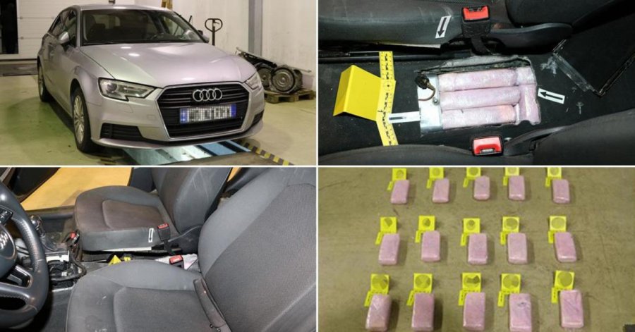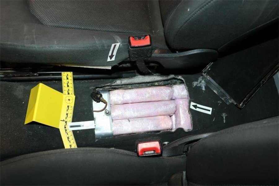 Sasia prej 11.35 kilogramë heroinë ishte ndarë në 20 pako dhe ishte fshehur në një vend të modifikuar në automjetin e shqiptarëve.