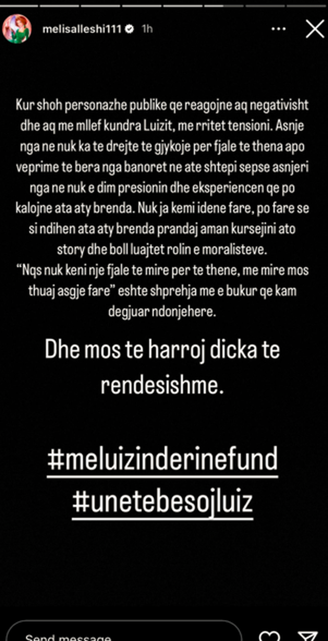 Xhensila Myrtezaj, Zaimina Vasjari, Meridian Ramcaj, Ilda Bejleri, Gerta Shino, Einxhel Shkira, Fation Kuqari, Ilda Bejleri, Melisa Lleshi, Antigona Ramosaj, Armina Mevlani, Ariana e pafundësisht personazhe të tjerë po mbështesin Luizin.