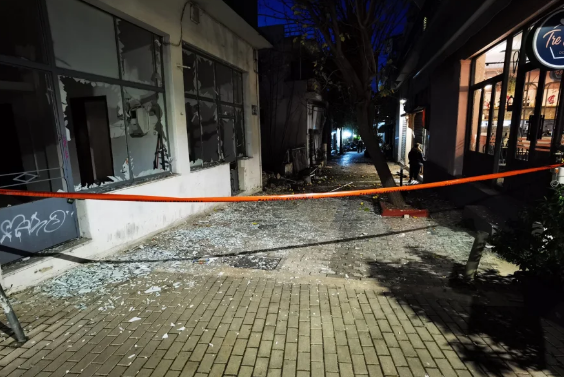 Nga shpërthimi që ka ndodhur rreth orës 3:40 fatmirësisht ka pasur vetëm dëme materiale në zonën poshtë klubit, por banorët janë ngritur të tmerruar.