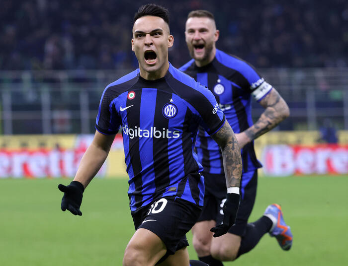 Inter Milan’s Lautaro Martinez against Verona's Darko Lazovic during the Italian serie A soccer match between FC Inter and Verona Giuseppe Meazza stadium in Milan, 14 January 2023. ANSA / MATTEO BAZZI