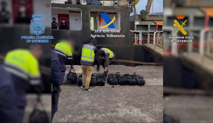 Një operacion i autoriteteve spanjolle 80 milje në lindje të ishujve Kanarie ka çuar në sekuestrimin e 4 mijë e 500 kilogramëve kokainë dhe arrestimin e 15 anëtarëve të ekuipazhit.