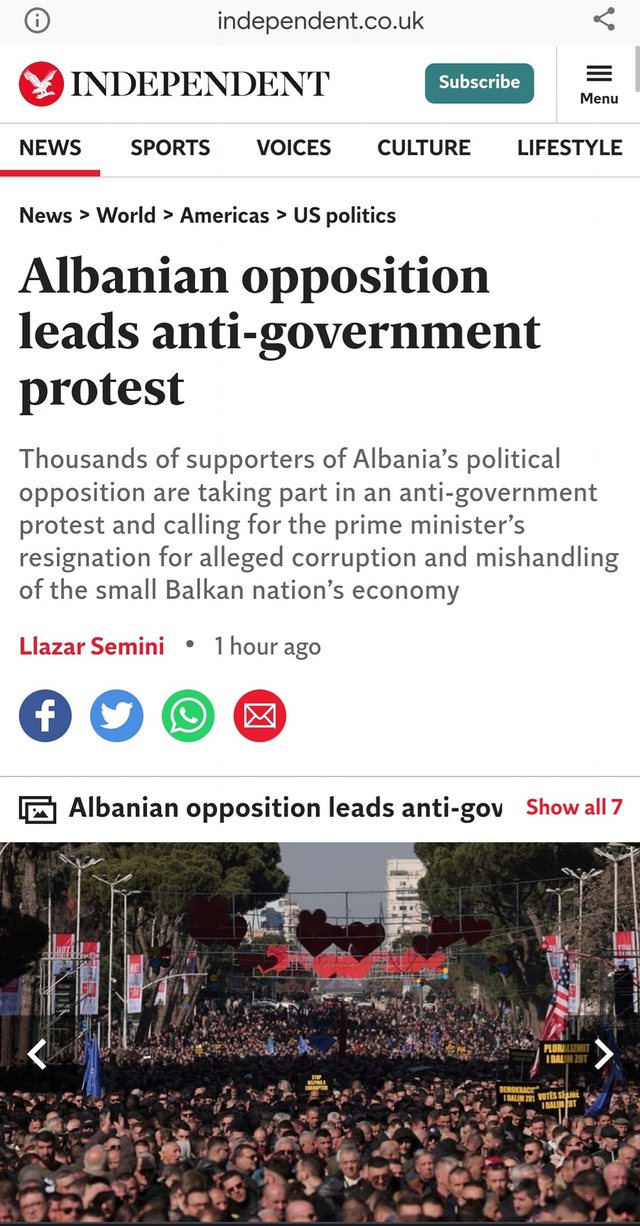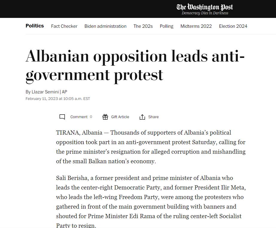Protesta e opozitës dhe pjesëmarrja e lartë e qytetarëve në të është pasqyruar edhe në mediat ndërkombëtare.