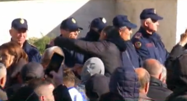 Në pamjet shihet një protestues që përqafon dhe puth punonjësit e policisë, të cilët janë vendosur në kordon para Kryeministrisë.