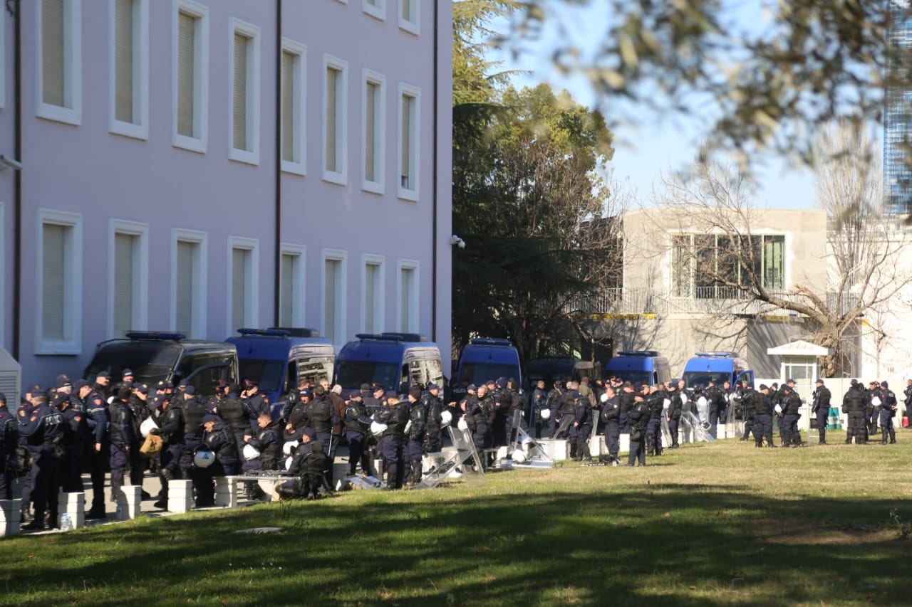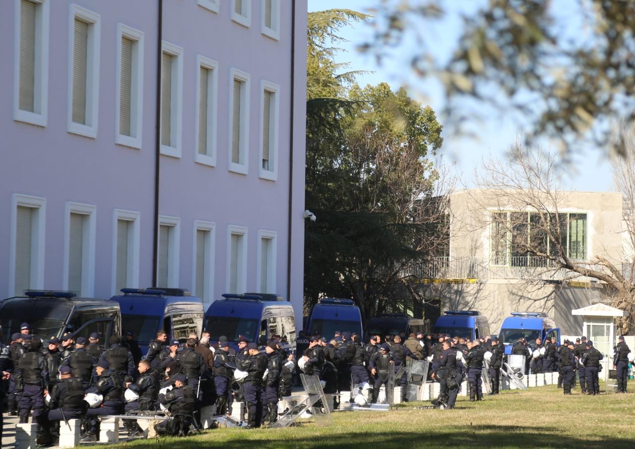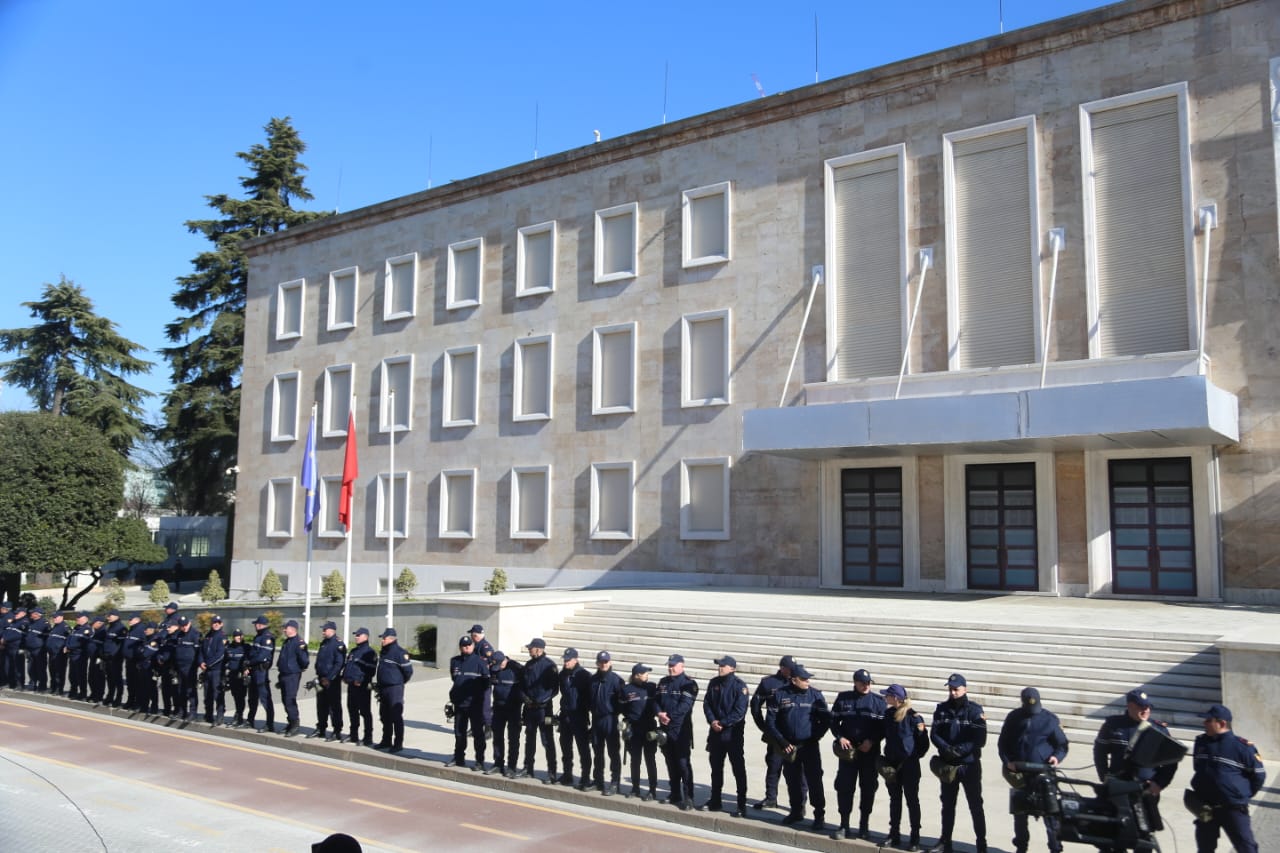 Po ashtu, punonjës policie janë vendosur në lartësi tarracën e Kryesisë së Kuvendit për survejim. Forca të shumta janë vendosur po ashtu pranë kryeministrisë.
