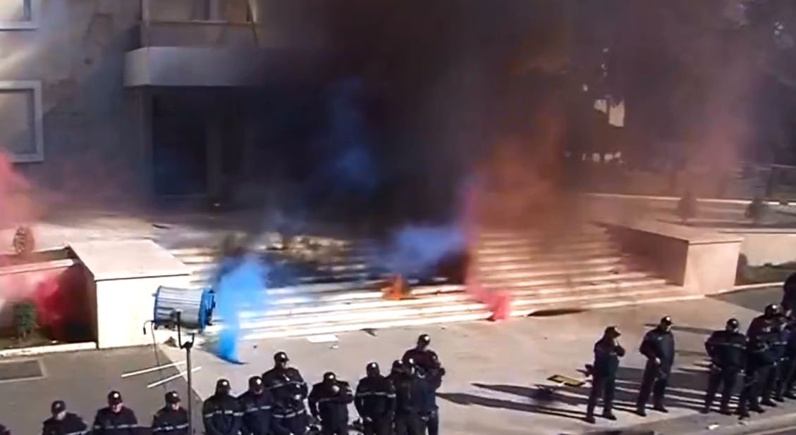 Tymuese dhe shashka janë hedhur nga proteusit para hyrjes kryeministrisë, ku po protestohet prej mesditës.