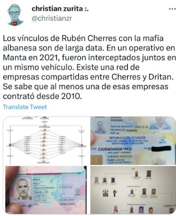 Në orët e mëngjesit të kësaj të hëne, media dixhitale La Posta prezantoi një raport policor që do të lidhte shtetasin Rubén Chérrez me strukturën kriminale të njohur si ‘mafia shqiptare’, një organizatë kriminale ndërkombëtare e lidhur me trafikun e drogës.