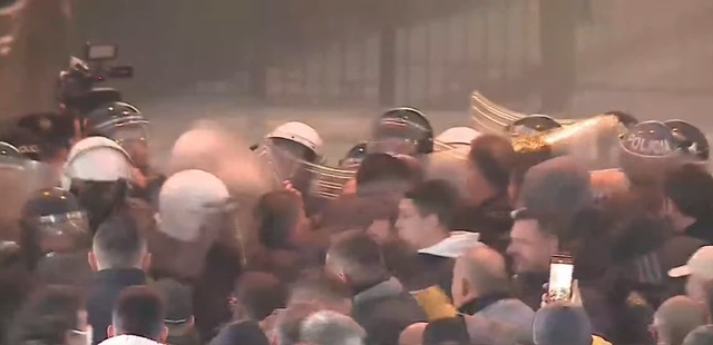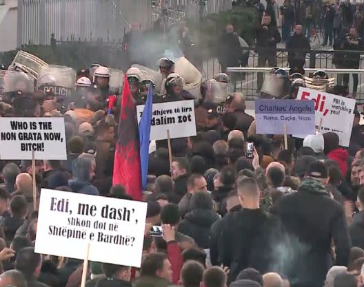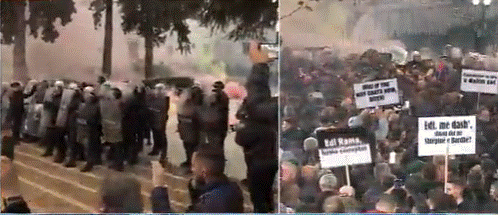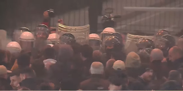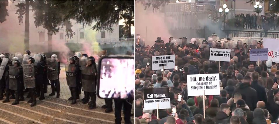 Protesta e opozitë përpara Parlamentit ka eksaluar në përplasje me policinë vetëm 20 minuta pas nisjes së saj.