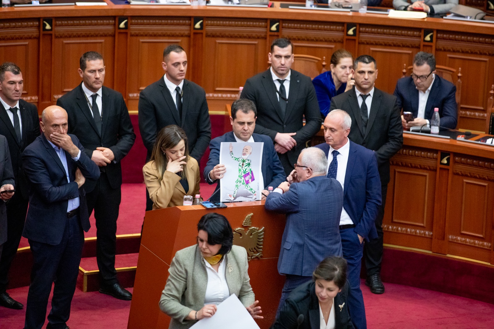 Edi Rama priti përfundimin e protestës së Partisë Demokratike para Parlamentit dhe përjashtimin e 18 deputetëve opozitarë për të marrë guximin që pas një muaji të hyjë në sallën e Kuvendit.