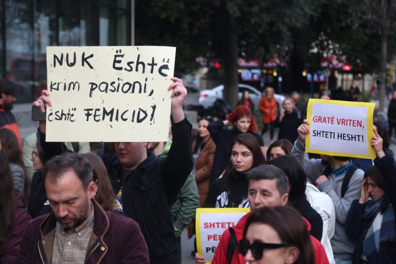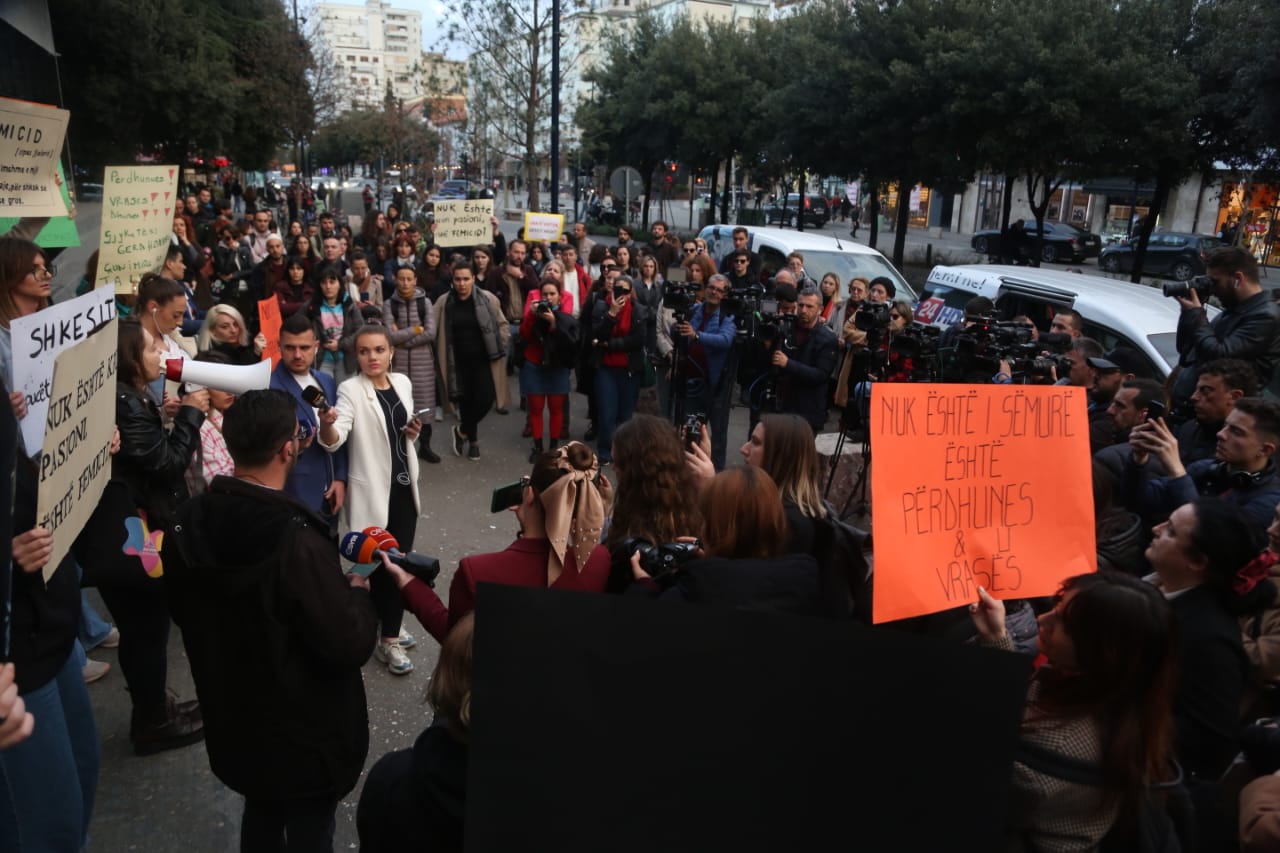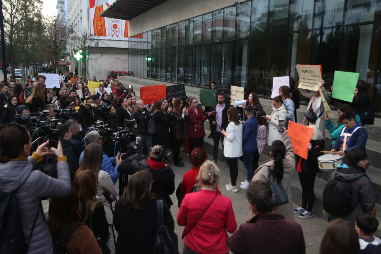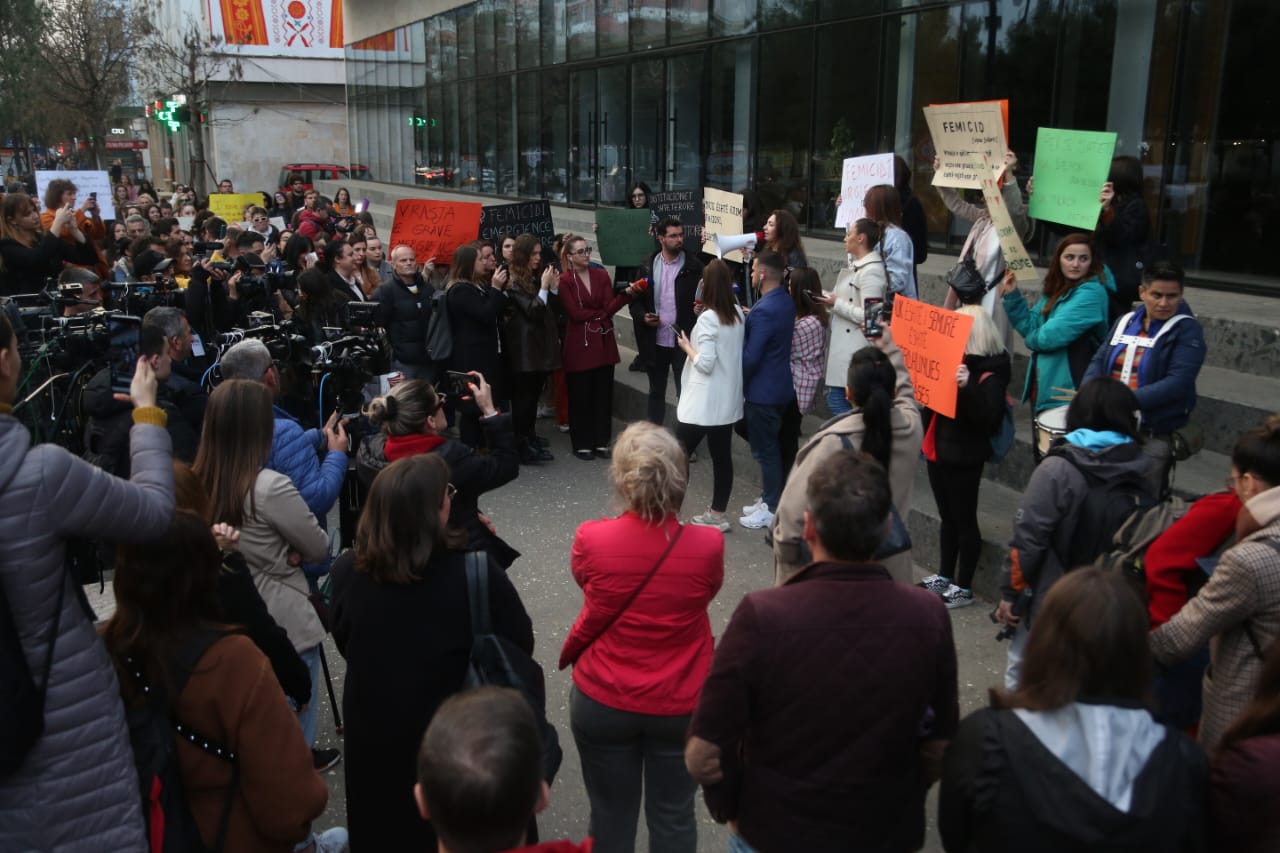 Duhet të flasim që e kemi normalizuar dhunën, femicidin e kemi konsideruar normal. Nuk është krim pasioni por vrasje e gruas. Ky është momenti të flasim më shumë”, u shpreh një nga protestueset.